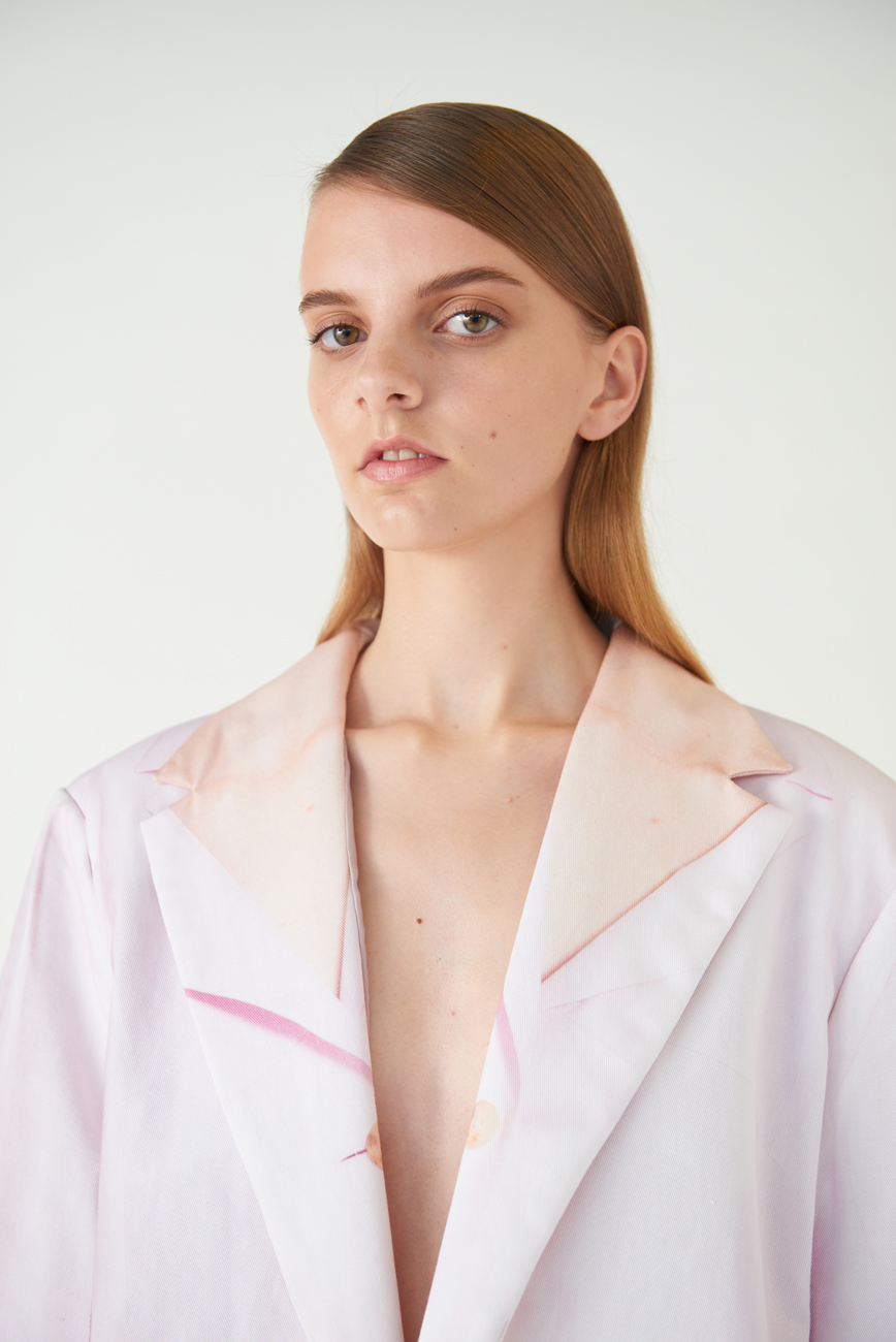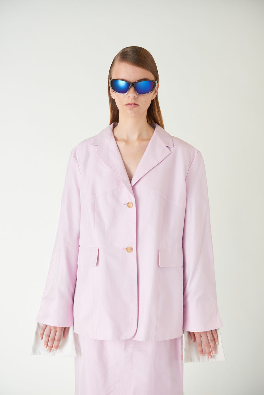 "Back" Pink Cotton Skirt Suit,