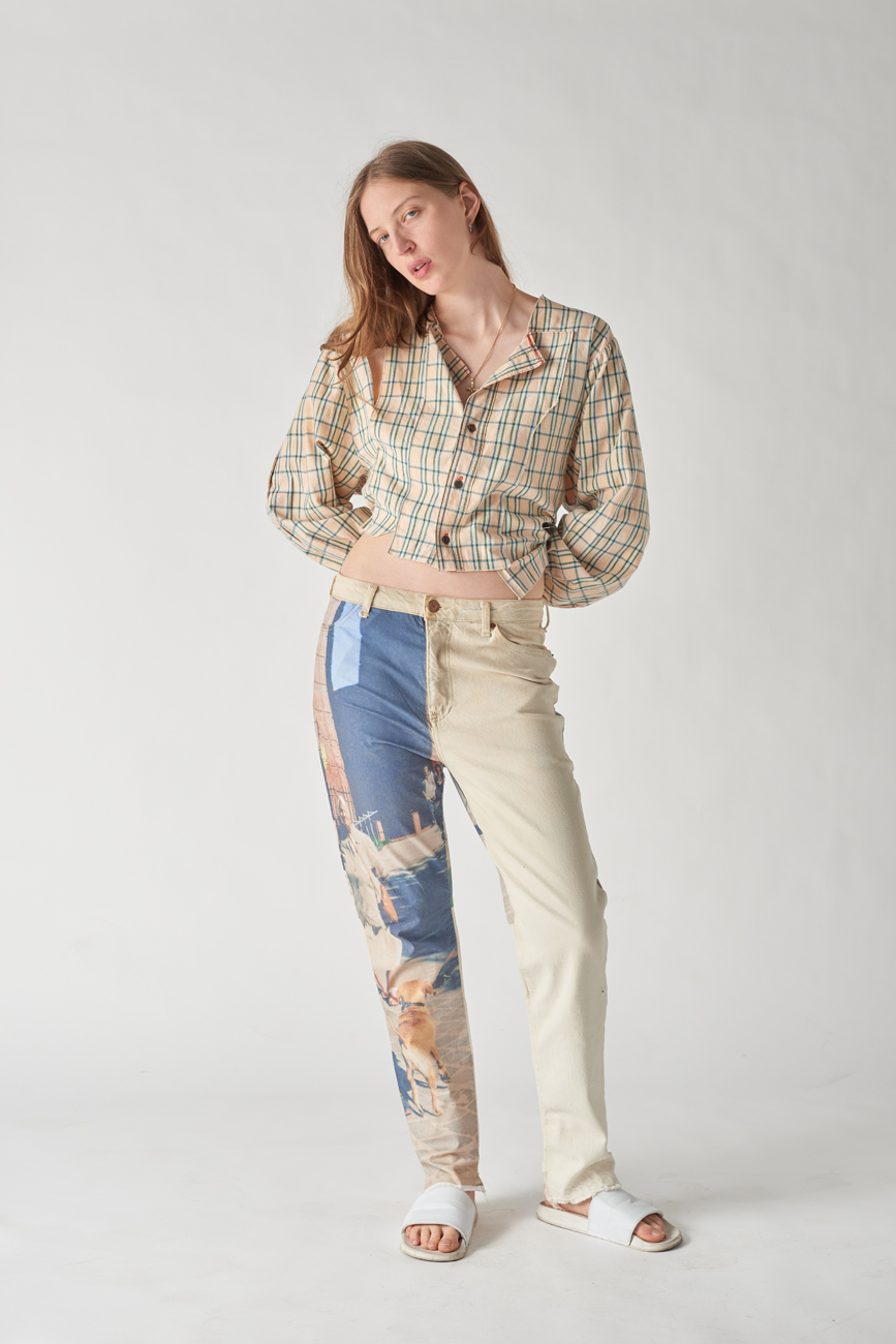 "Spliced and Bleached" plaid shirt,