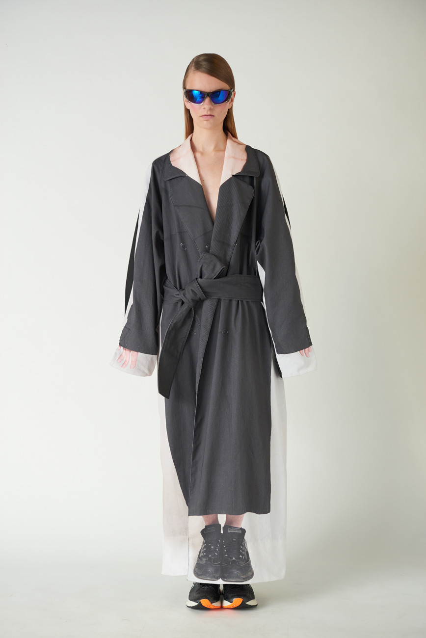 "Front" Black Cotton Trench,