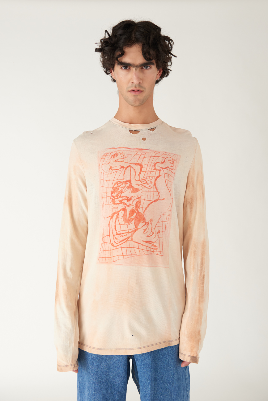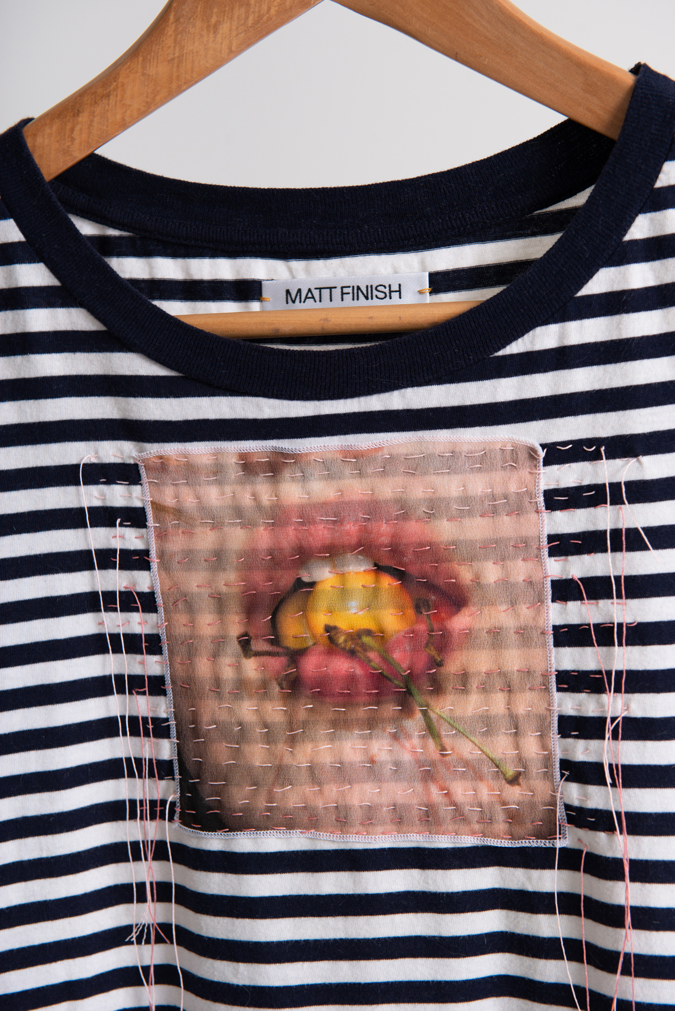 MATT FINISH is a reuse project that explores print as a form of communication and translation on a garment’s surface. Founded and led by photographer Agnieszka Chabros, for each capsule collection MATT FINISH invites a fashion designer, artist, publisher and stylist to create a capsule collection reworking found clothing through printing. MATT FINISH collaborators have creative freedom to express themselves within the conditions of the upcycled materials, forming an alternative model to practices mass production by re-discovering the one-off garment.